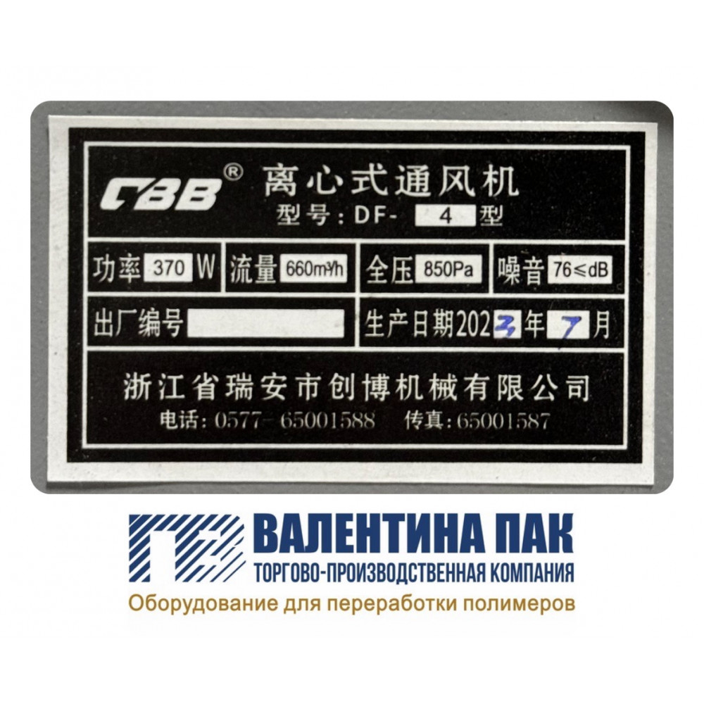 * Мощность - 370W, напряжение- 380V, скорость вращения- 2 800 r/min, максимальный ток- 0,95A, давление потока- 850 Ра.