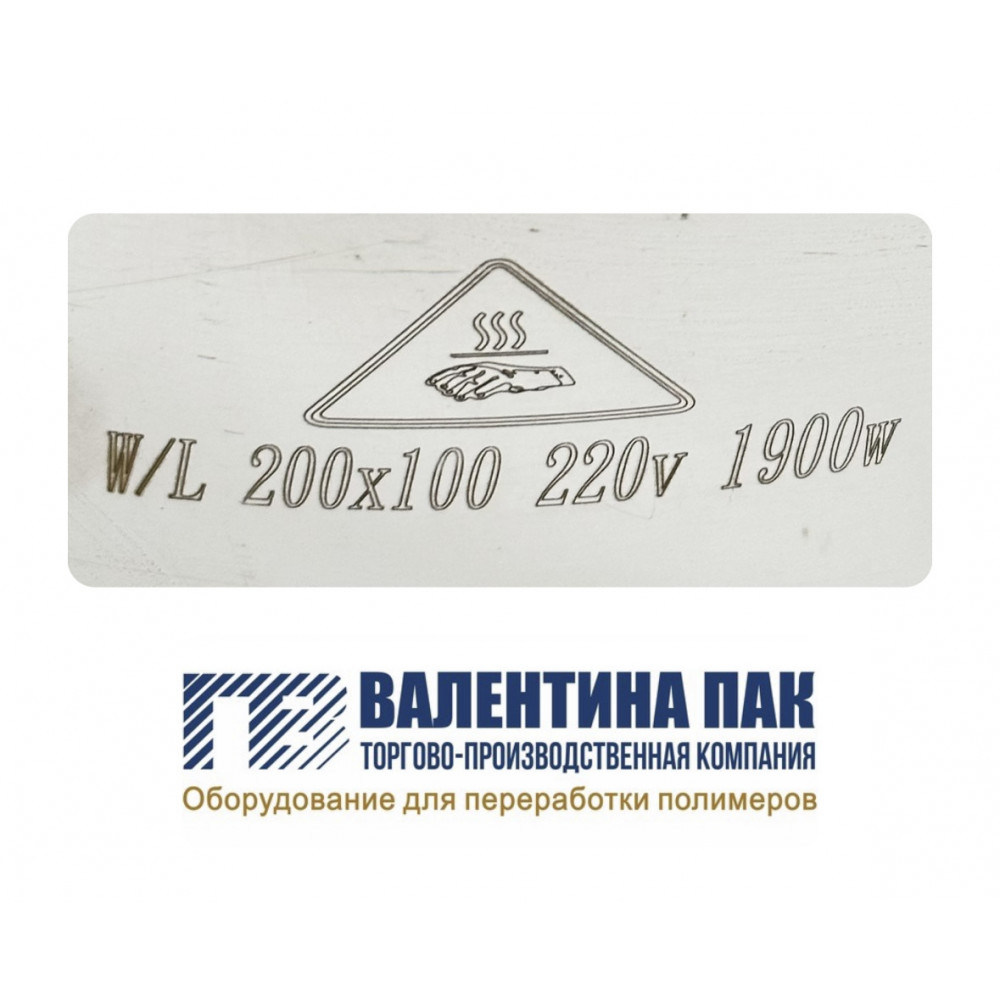 Нагреватель металлический хомутовый 200х100 мм, 1900W, 220V с отверстием для термопары для экструдера